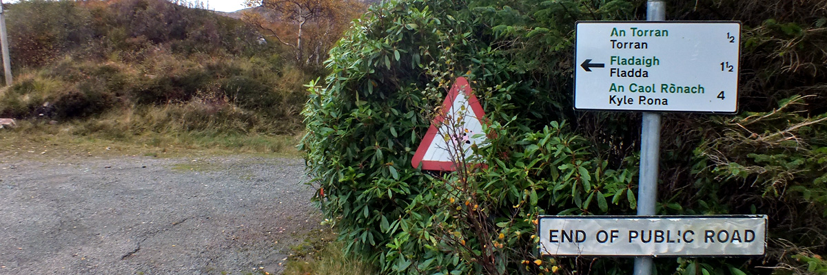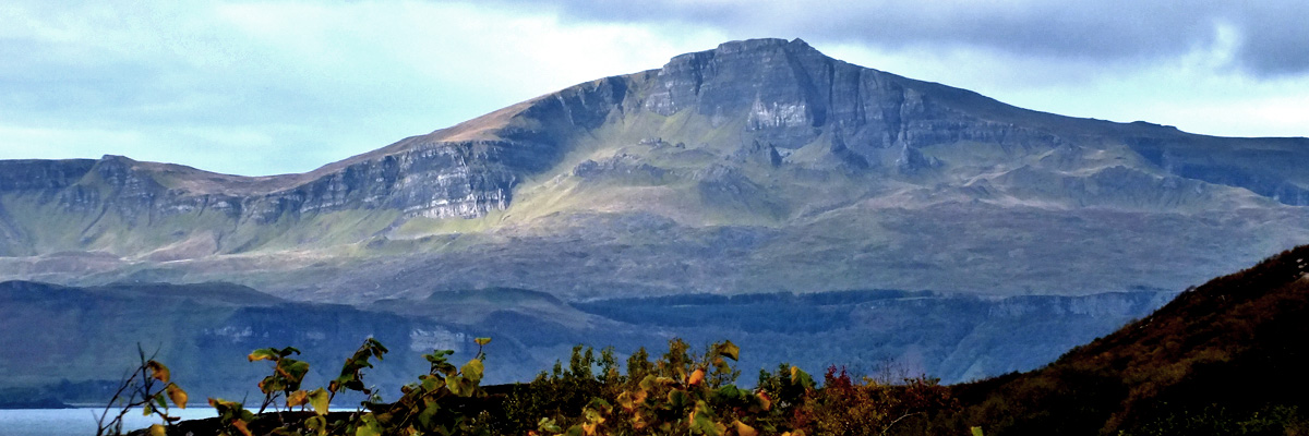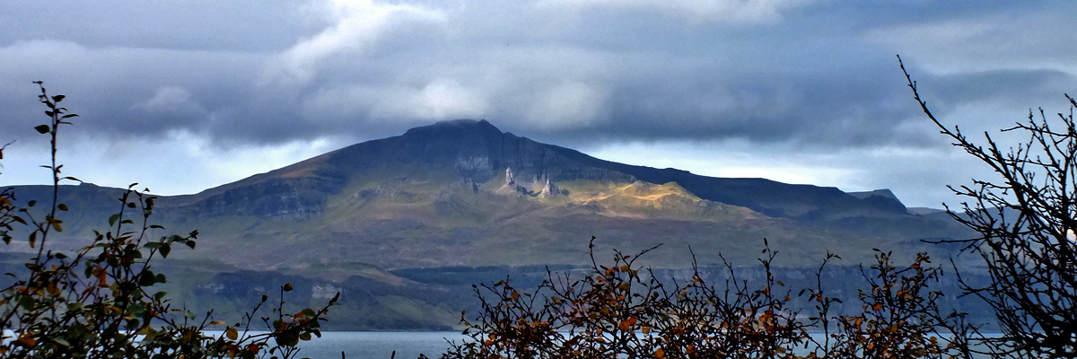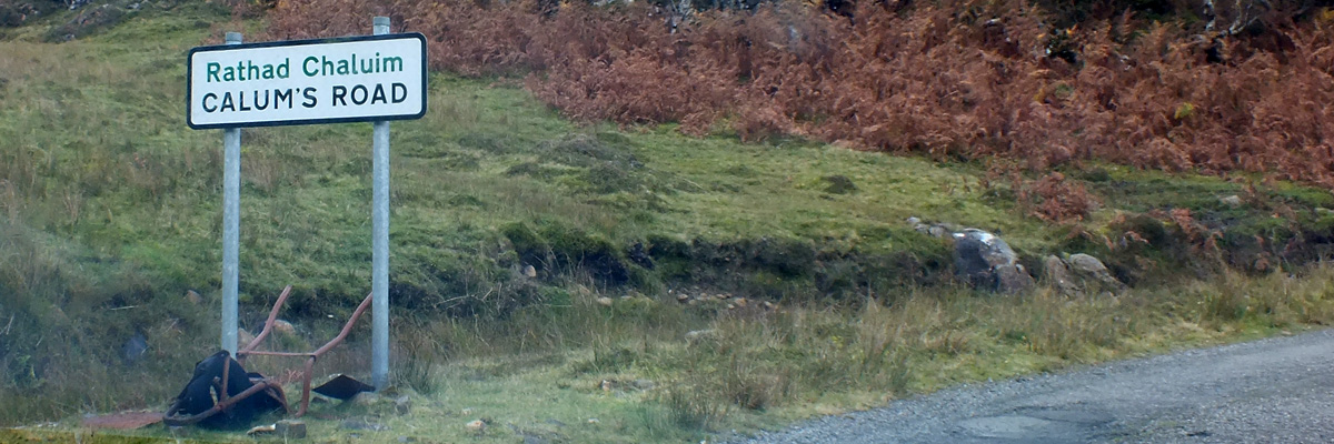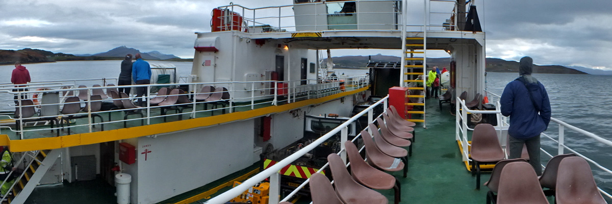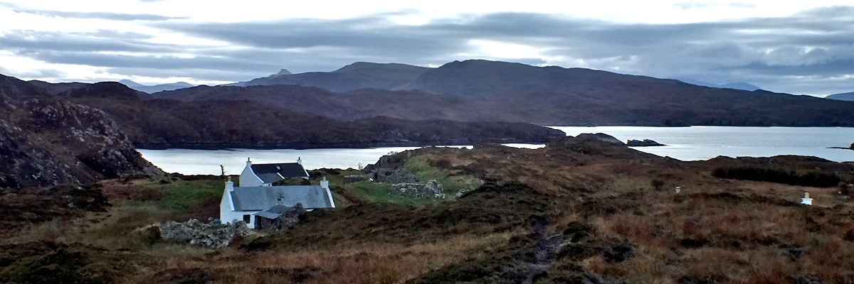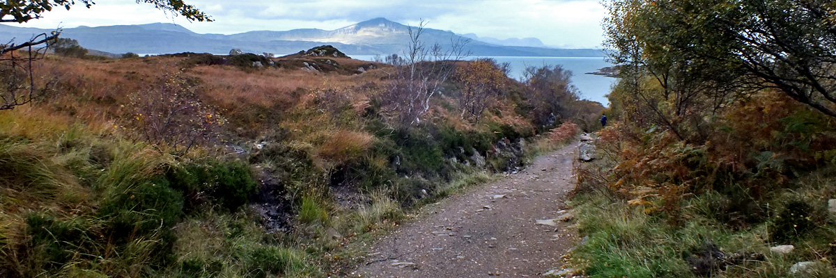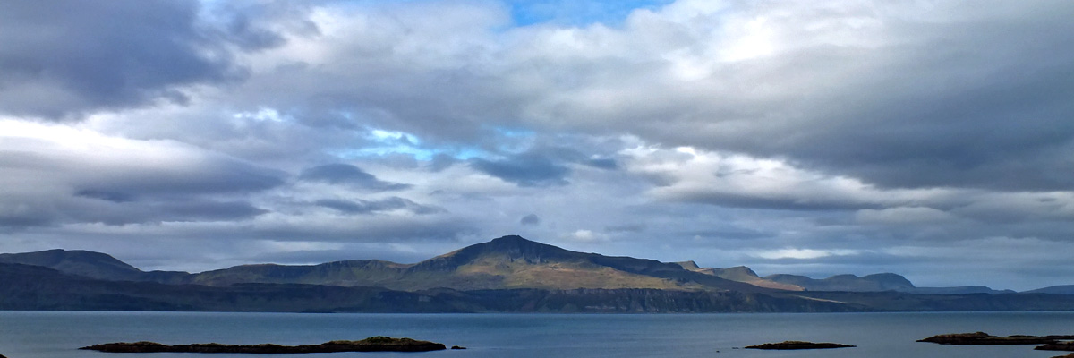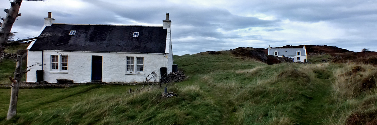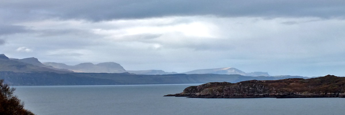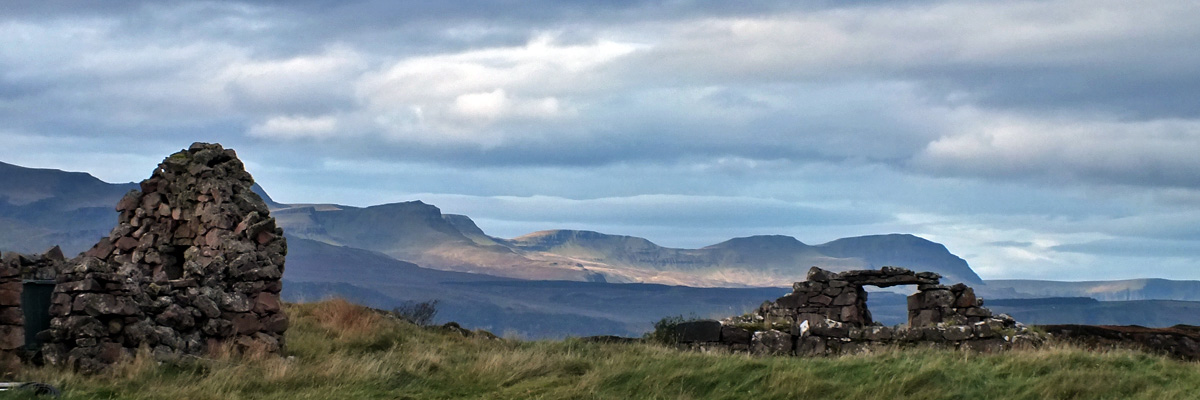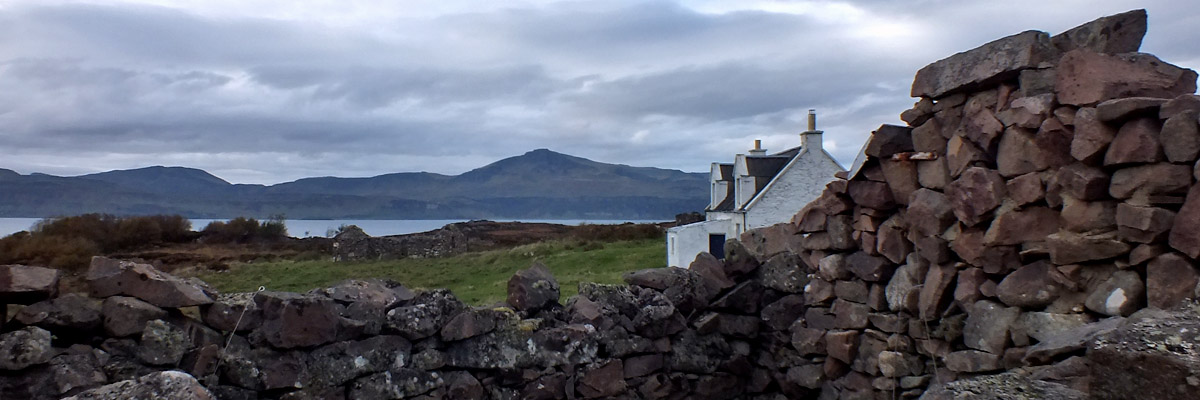 Wednesday 18 October 2017--Drove over the bridge to Skye and caught the ferry at Sconser for the Isle of Raasay. Caught a glimpse of the new Raasay Distillery, which has been in operation for a month or so now, but isn't ready to receive visitors. Drove to the end of the road in the north, the last mile and three quarters of which is known as Calum's Road, after the man who built it single-handedly over a period of ten years. From Arnish, we walked two miles along a trail to the island of Fladda, accessible on foot when the tide isn't too high. Wasn't sure what we would find there, and was surprised to find several holiday cottages, along with a number of ruined croft houses. Met a couple who appeared to be pushing 80, preparing to sail away after their annual three-month stay. I guess they like each other. Turns out they knew Calum. We enjoyed the views to Skye, the Shiants, and the Outer Hebrides from the summit of the island before backtracking to Arnish.