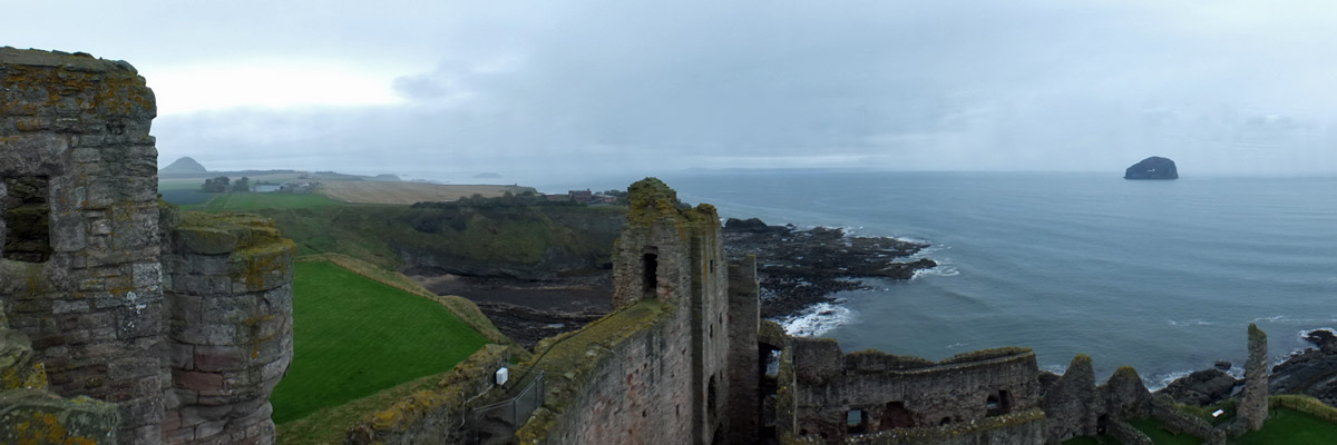 Monday 23 October 2017--I dropped Ron at the airport this morning, and on my way to Seahouses visited Tantallon Castle. It's a picturesque ruin with a particularly interesting history, within sight of North Berwick Law and Bass Rock. I'd like to come back when the sun is illuminating its red sandstone facade.