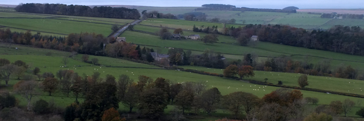 Thursday 26 October 2017--The fastest way from Seahouses to Keswick is south toward Newcastle, west to Carlisle, and south again to Penrith, all on A roads. I cut diagonally across on B roads instead, stopping for a look around Allendale. Never pass a dale with your name on it.
