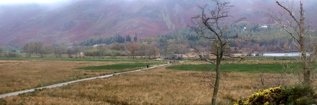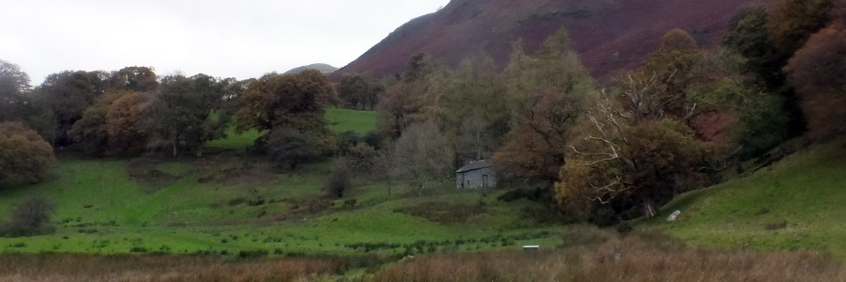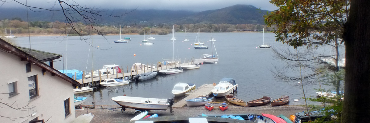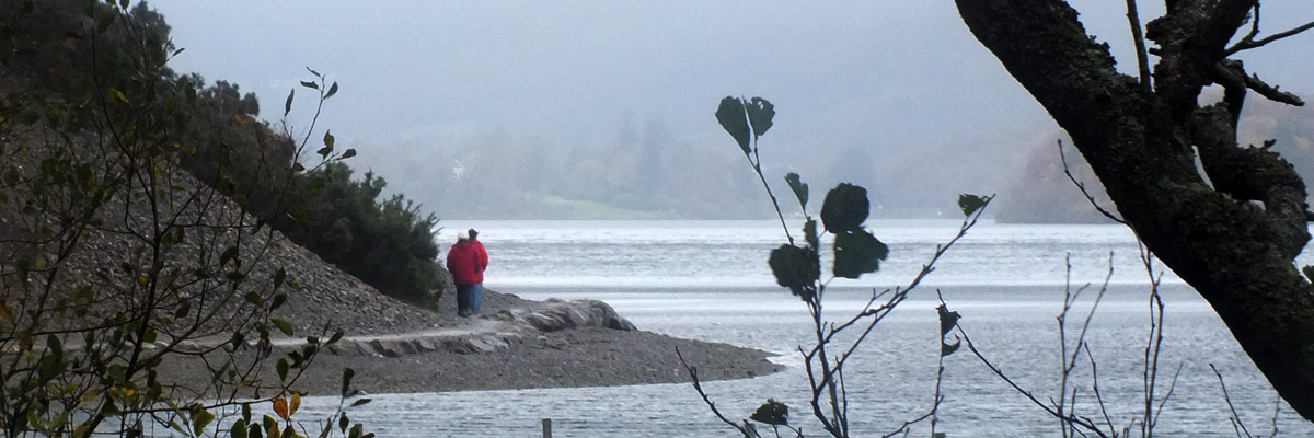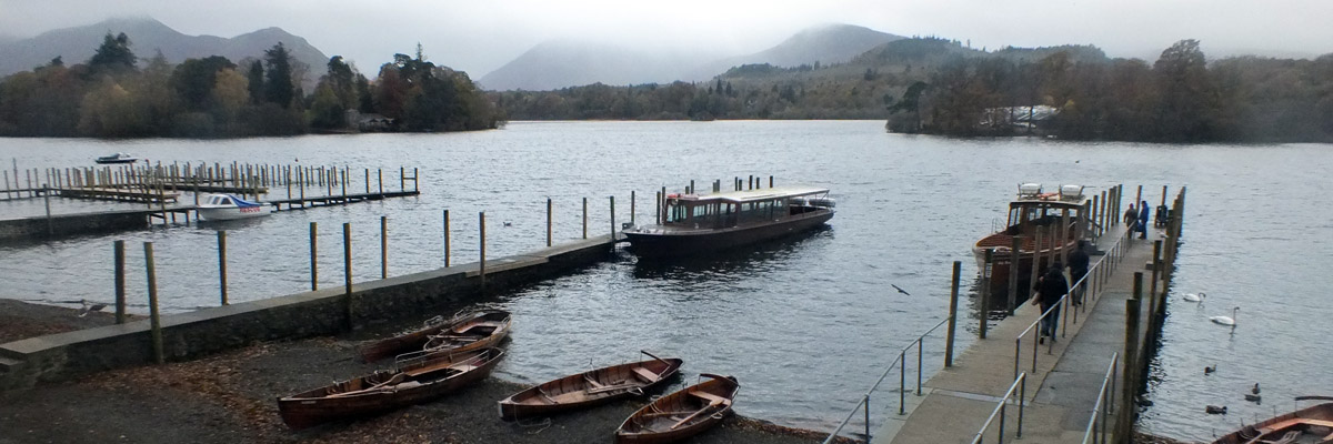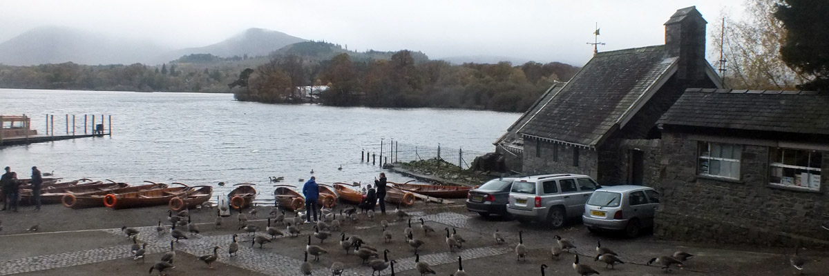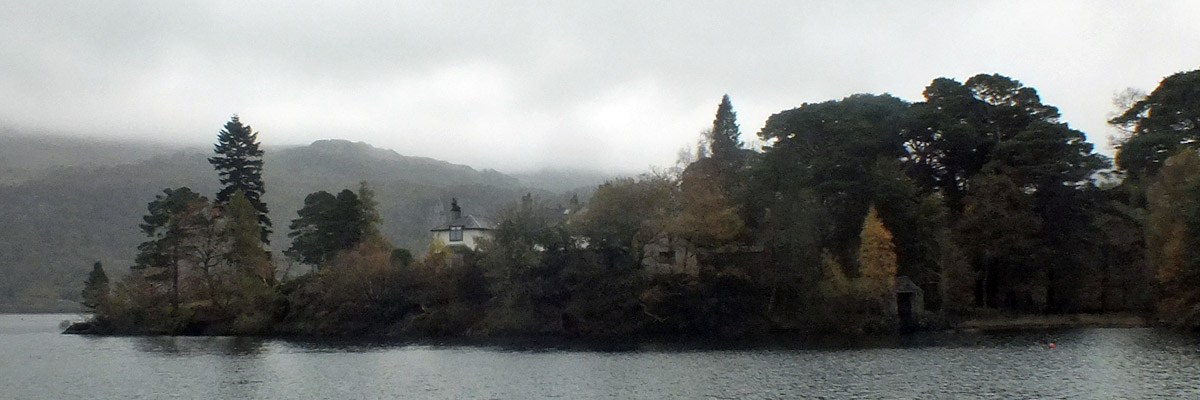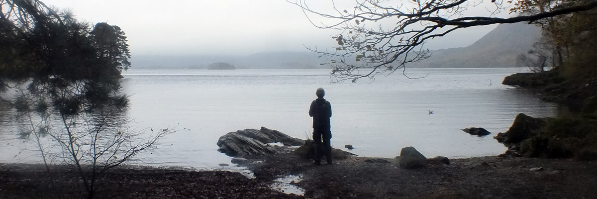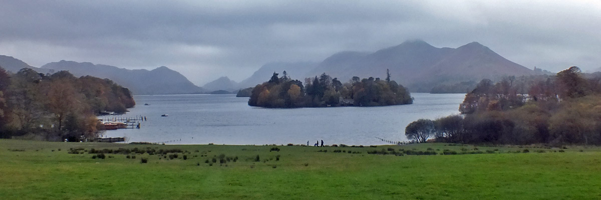 Saturday 28 October 2017--Gray day. We set out for a walk along the shore of Derwentwater. We were some way along before we admitted to ourselves that we were going to walk all the way around the lake. It's a circuit of about 10.5 miles, plenty enough for us.