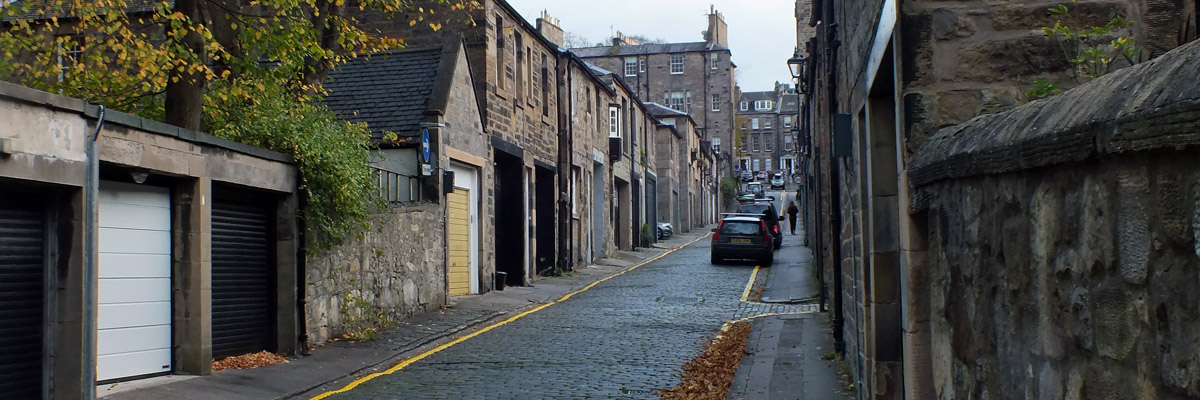 Thursday 18 October 2018--A New Town alley, our shortcut up to Queen and George Streets. We were too late at Kay's last night; Ron got out rather late, and I got out rather later. I popped into Waterstone's bookshop on Princes Street to buy the latest Rebus novel before meeting Ron at the Bow Bar.