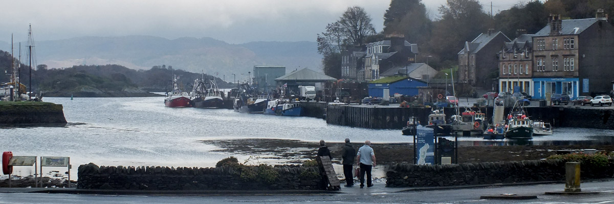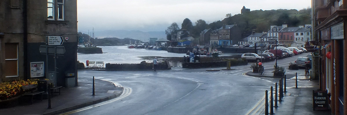 Saturday 20 October 2018--Win, Rob, and I left Edinburgh for a week on the Isle of Islay. As is my preference, we took the ferry from Gourock to Dunoon, and the one from Portavadie to Tarbert. Arrived in the latter town, shown here, with plenty of time to have lunch and shop for basic groceries. Landed on Islay after dark, checking in at our flat in Port Charlotte at about 8:30. I've long wanted to spend a relaxing week on Islay, and booked this self-catering unit with the idea that I'd be happy to do it on my own. Having Win and Rob along to share expense and experience is gravy.