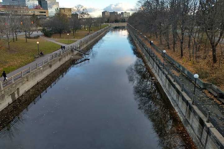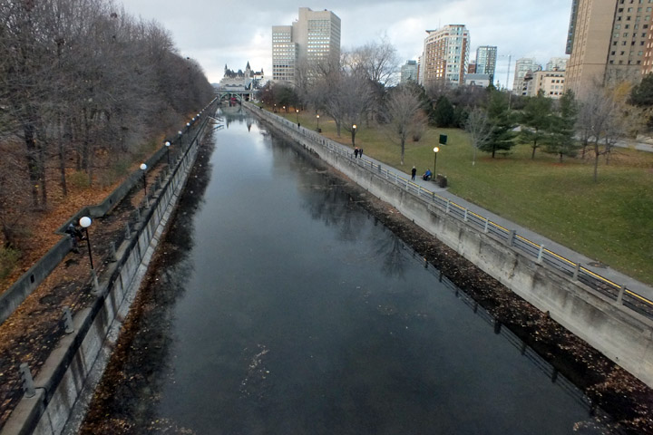 The Corktown Footbridge crosses the canal, linking to the campus of the University of Ottawa. I imagine it sees a fair bit of traffic on Friday and Saturday evenings. Two rails of the bridge are adorned with padlocks, I assume in observance of a tradition similar to that on the Pont des Arts in Paris, where lovers would inscribe their names on a lock, attach it to the bridge, and throw the key into the Seine, as a gesture of romantic commitment. Apparently this was mostly done by tourists; the locals were annoyed, the city was concerned about the weight of hundreds of thousands of locks, and eventually the practice was banned, or at least strongly discouraged. Things don't look so bad here. I've always wondered how the ritual was completed with a combination lock.