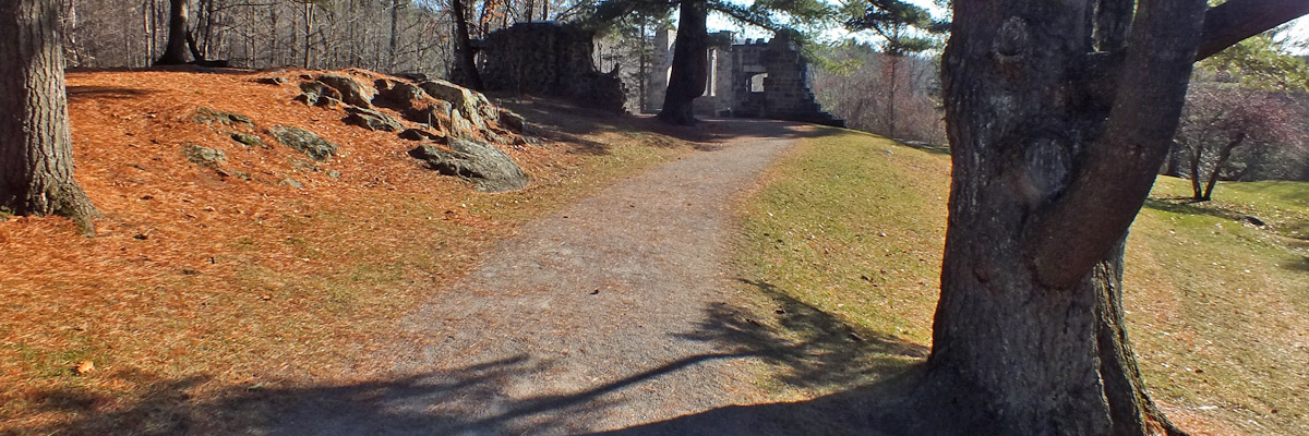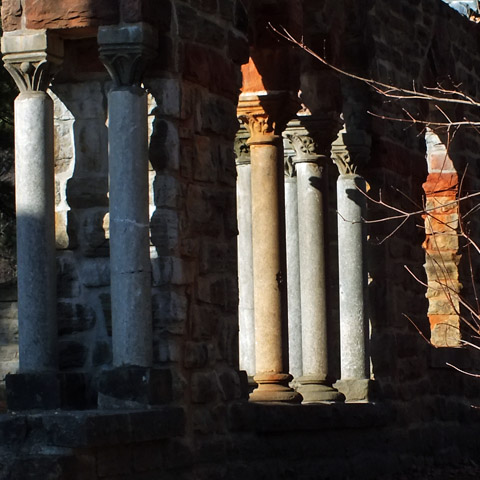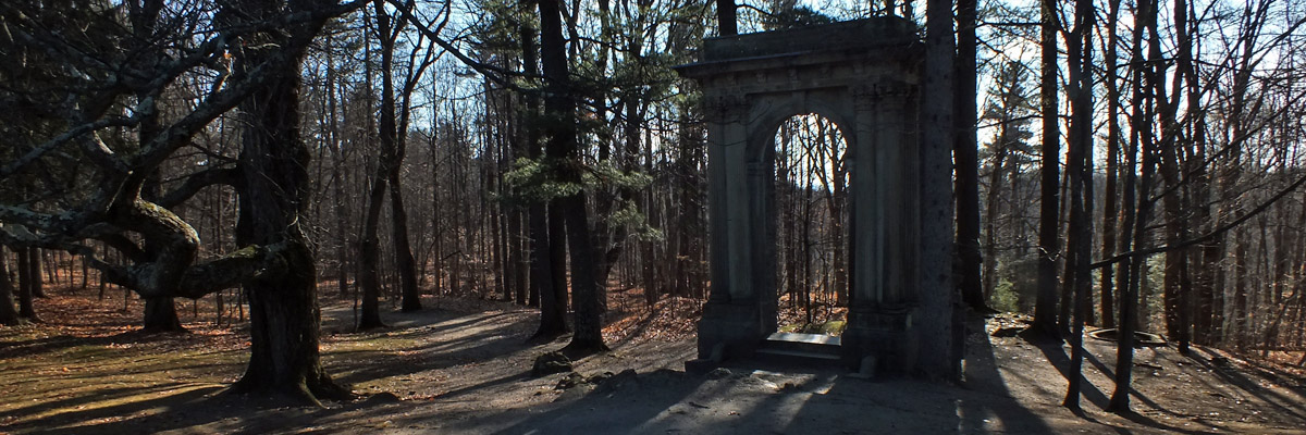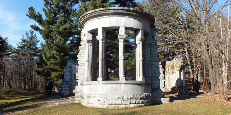 Early in his political career, King acquired property near Lac Kingsmere in the Gatineau hills, north of Ottawa, and built a cottage on it. This was his summer refuge for the rest of his life. He would occasionally entertain foreign visitors (including Franklin Roosevelt) there, but cabinet members and bureaucrats were invited for business. Nevertheless, the esthetics of his surroundings were obviously important to him--he and Bert Harper had enjoyed long walks in the woods around Kingsmere--and in the mid-'30s, he started to acquire bits of stone buildings being demolished in Ottawa, and had them erected on the property as faux ruins. The estate is now a historic site within Gatineau Park, and visiting is my first order of business today. It's a lovely area; I'd like to explore more of the park and the adjacent valley of the Gatineau River.