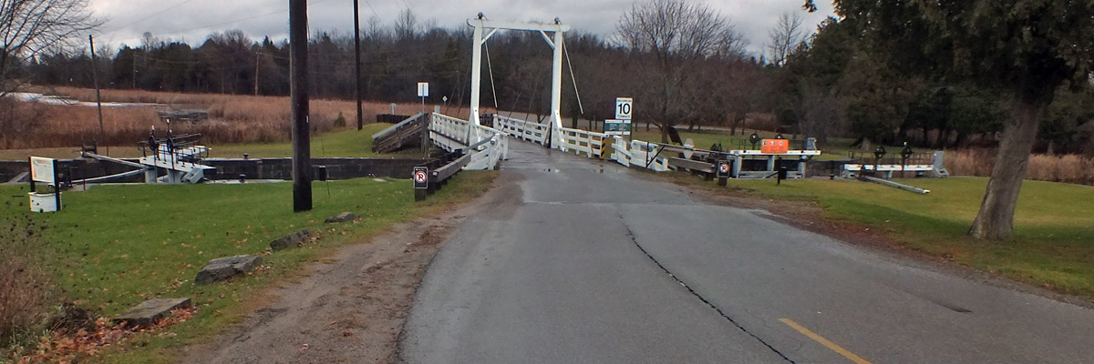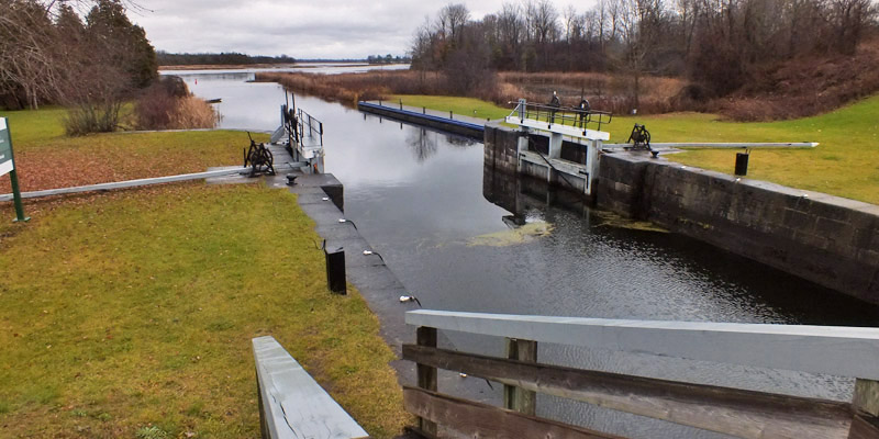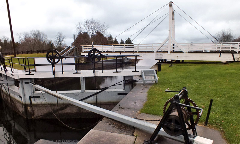 Friday 26 November 2019--Kilmarnock lies about eight miles upriver from Merrickville, five by road. There's a canal lock, a simple swing bridge, and not much else. Nor was there ever, as far as I can tell. Truth to tell, I was drawn by nothing more than the Scottish name, the reason for which seems to have been lost to history. The canal channel cuts off a sharp turn in the river, taking advantage of a snie--a dry flood channel. If nothing else, I've learned a new word.