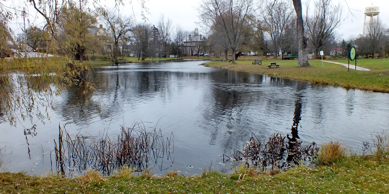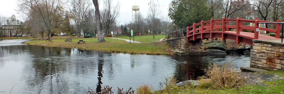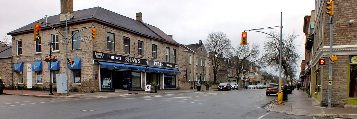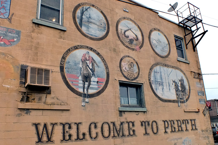I'm actually on my way to Perth, at one time, according to Wikipedia, "the military, judicial, political and social capital...of the whole of the Ottawa Valley." The reason for this Scottish name is documented: it was in honor of Governor-General Sir Gordon Drummond, native of Perthshire. Its importance diminished with the growth of Ottawa, and perhaps a bit more with the rise of Smiths Falls. I nonetheless find an attractive stone-built town of about 6500 residents, with a lively and charming commercial center. It sits five or six miles west of the Rideau River, probably near double that via the Tay River, and when the canal was built, the town petitioned the government to be linked to it. The request was ignored, so local merchants ponied up to have the Tay canalized privately. The work was not very well done, the route was not successful, and the locks fell into disrepair. It was not until the 1880s that the town's influential MP persuaded the government to do a proper job, up to Rideau Canal specs. Recreational boaters today can dock at the Tay Basin, right downtown, if their vessels are small enough to pass under the several low road bridges. Larger boats can dock at Last Duel Park, a few blocks away. (The park was the site of the last fatal duel in Upper Canada, in 1833.) On a stroll about town, in addition to restaurants and boutiques, the visitor might see: