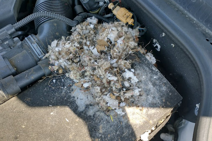 fibers. It's a chipmunk nest. My car tends to sit in the garage for several days at