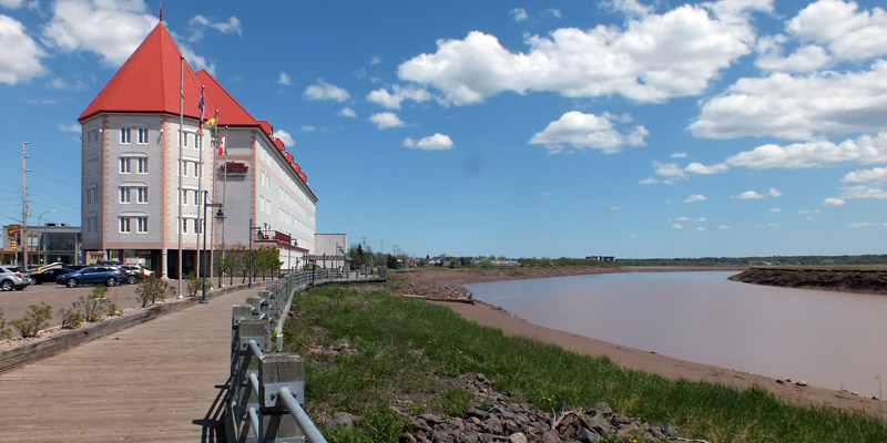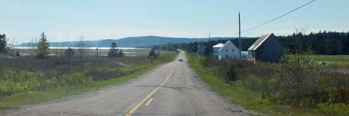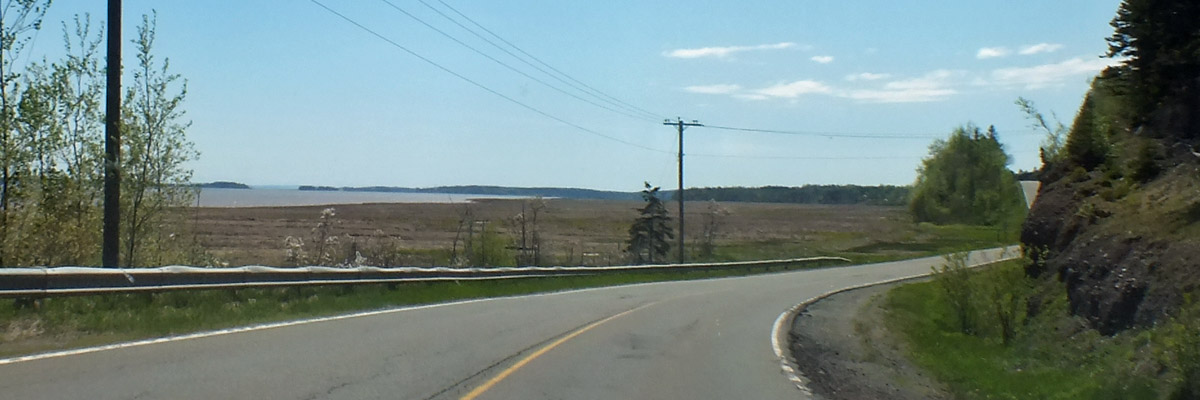 on YouTube]. Then I cross the Petitcodiac and drive downriver, as it widens