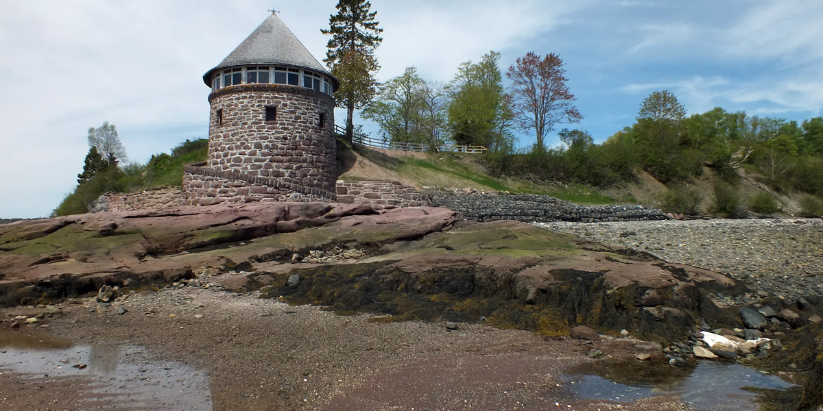 Ministers Island is accessible via a gravel causeway exposed at the lower half of
