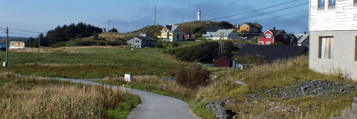 There's a cluster of houses above a narrow slit of a harbor, at the northwest