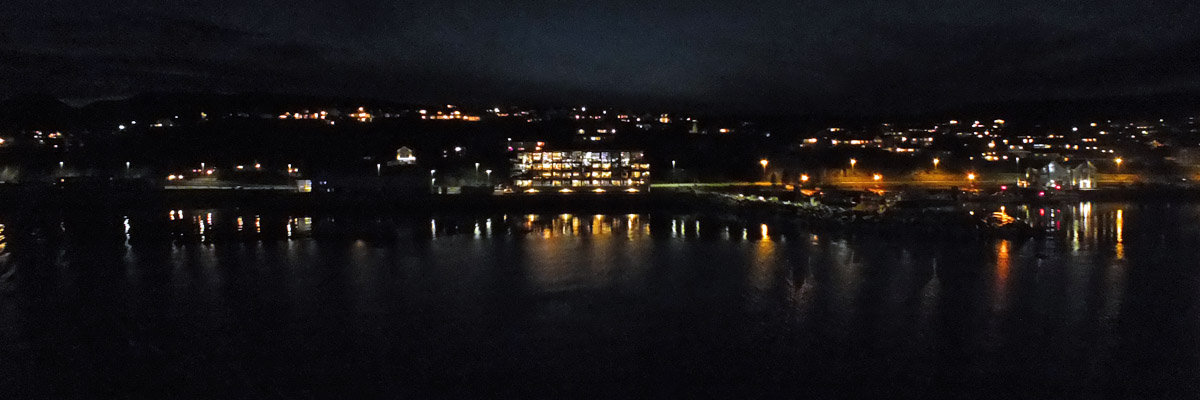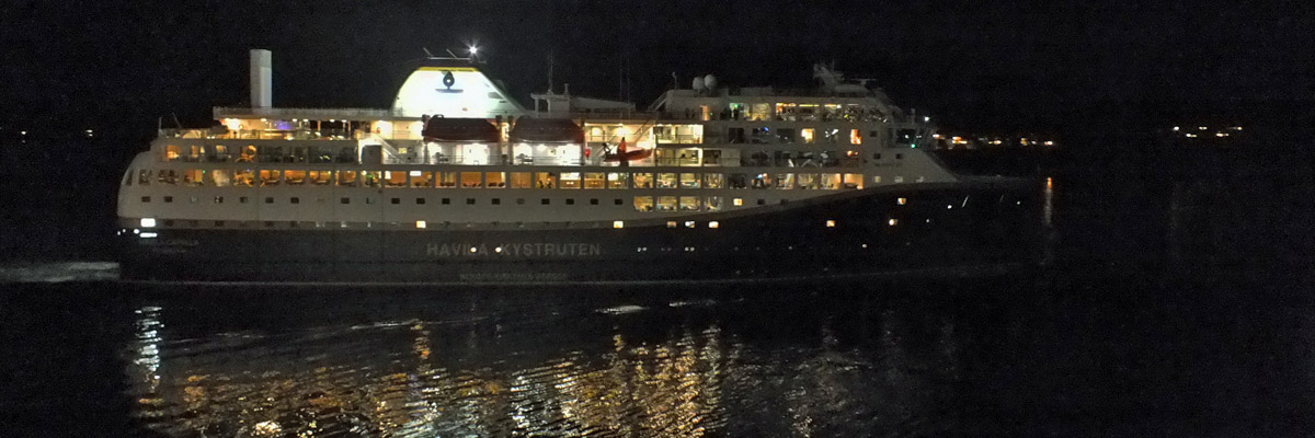 before we stop in Rørvik, well after dark, we pass another ship that looks a lot