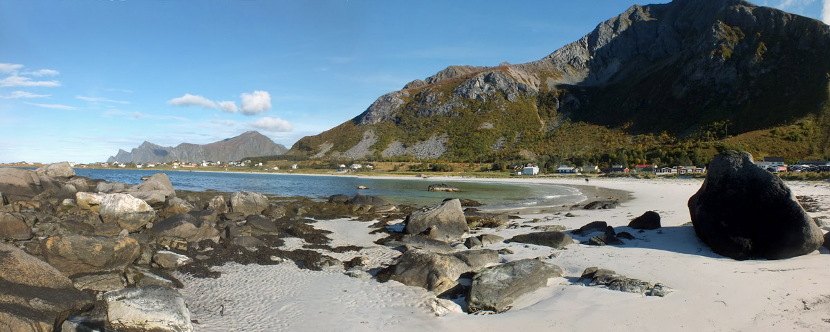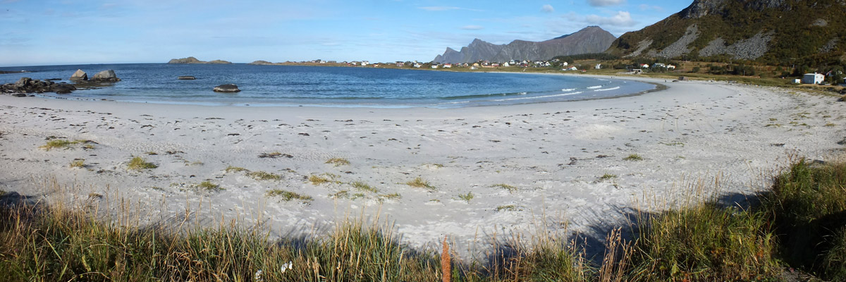 There isn't an awful lot of beach around Lofoten, but there are several reputed to be worth visiting. The one at Ramberg is right by the road. There are a few others that are only accessible by walking a few miles, and I'd love to visit one or two; somehow having to earn the view makes it all the more beautiful. But the view of jagged mountains from any Lofoten beach, or from any other random spot, is quite lovely enough. Rambergstranda is no exception.