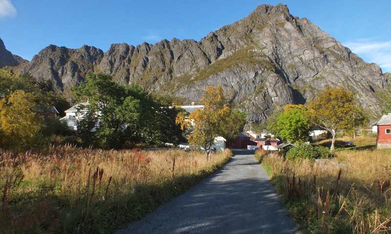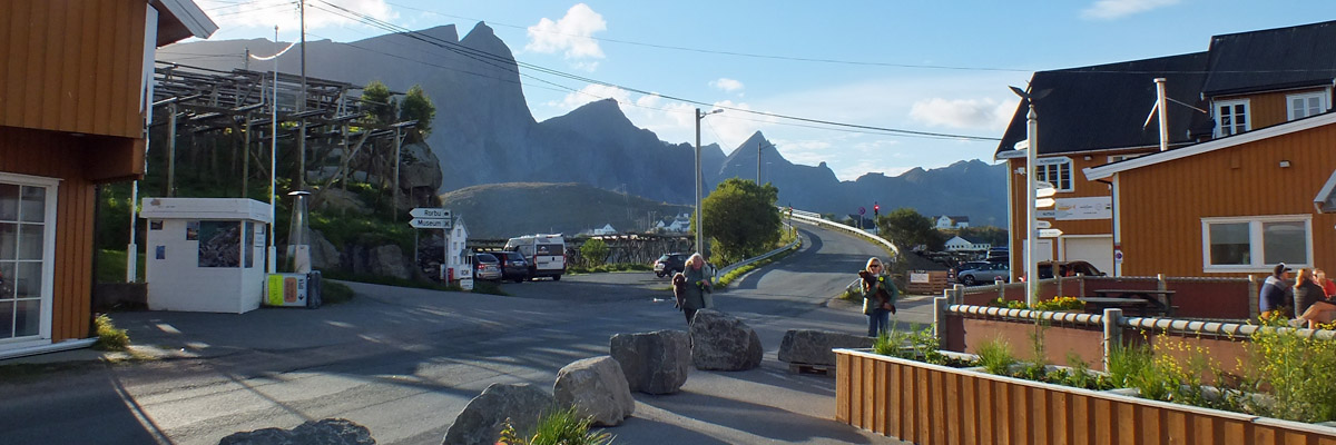 Å may be at the end of the road, but it's not the end of Lofoten. There's another five miles of the island of Moskenesøya; the island of Værøy is ten miles out from there, and Røst is another twenty miles beyond that. But Å is as far as I can go. The village is not very big. There are two museums, the Norsk Fiskeværsmuseum (fishing village museum) and the Lofoten Tørrfiskmuseum (stockfish museum), that would be worth visiting, but they aren't open, and I haven't really allowed time, anyway. The restaurant down at the pier isn't open, either. I take a few photos and start back.