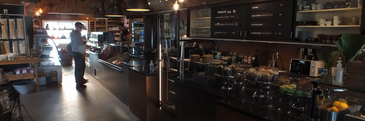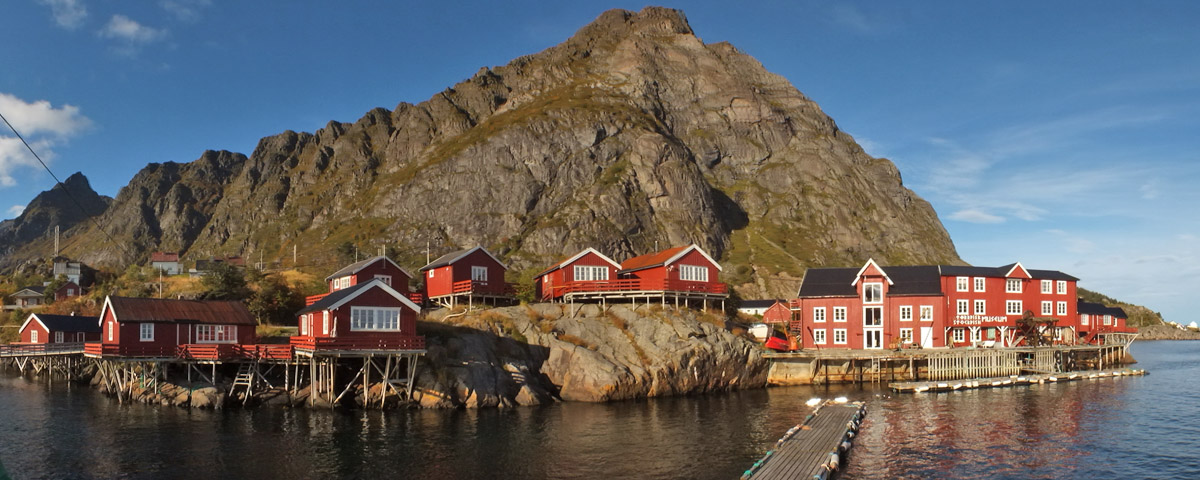 Just north of Reine, I stop at the famous Anita's Sjømat (seafood restaurant), on one of several small islands that the road winds over. There are racks around for drying stockfish, as there are at Å, Henningsvær, and every other fishing village. The stockfish season is in the spring. It would be interesting to see the fish hanging on the racks, but I imagine it's a smelly time of year. The menu at Anita's is fishburgers and, well, that's about it. They're really good fishburgers.