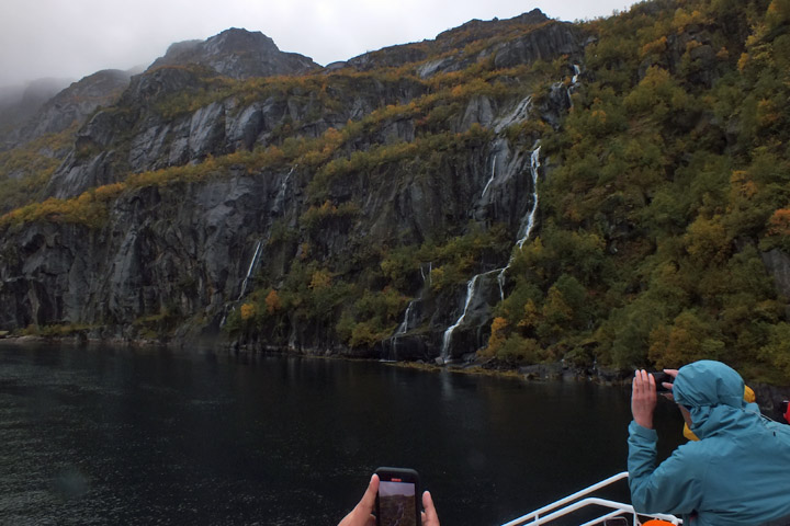 The Trollfjord is very narrow at the entrance, about a hundred meters wide;