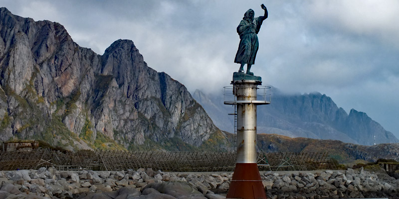 We sail back into Svolvær, past the statue of the fisherman's wife watching for