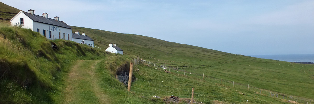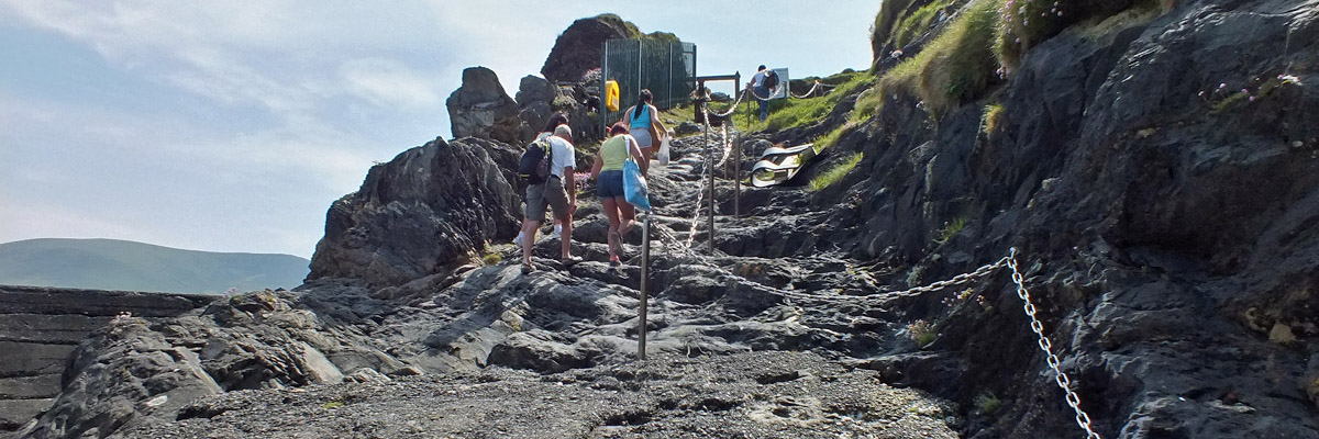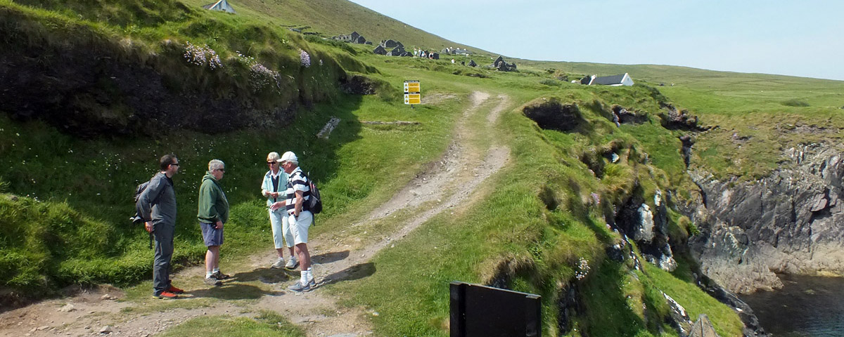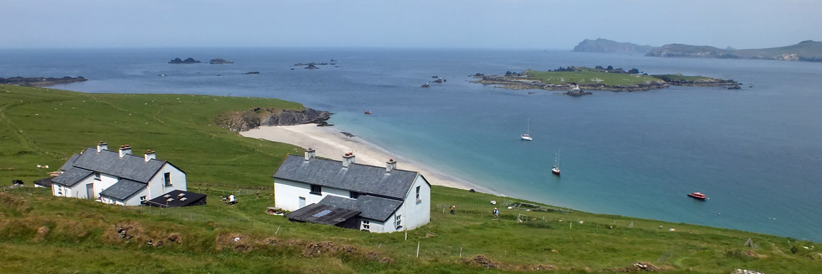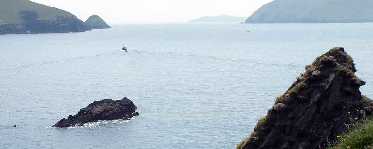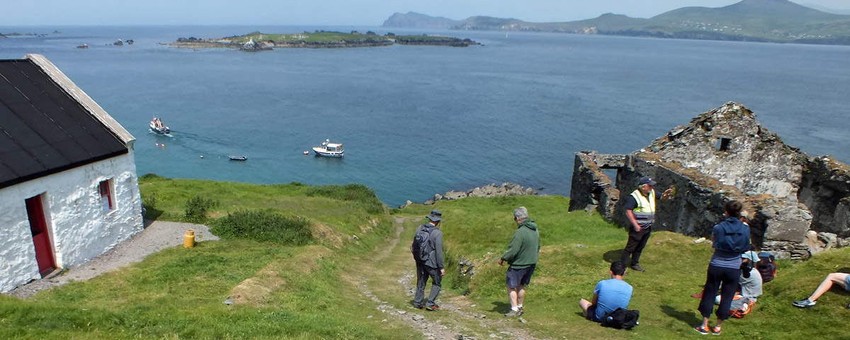 A dinghy takes us to our transport, a boat that is itself none too large. It's about two and a half miles across to the Great Blasket. The walk up from the landing is on uneven rock, not easy for those unsure of foot.