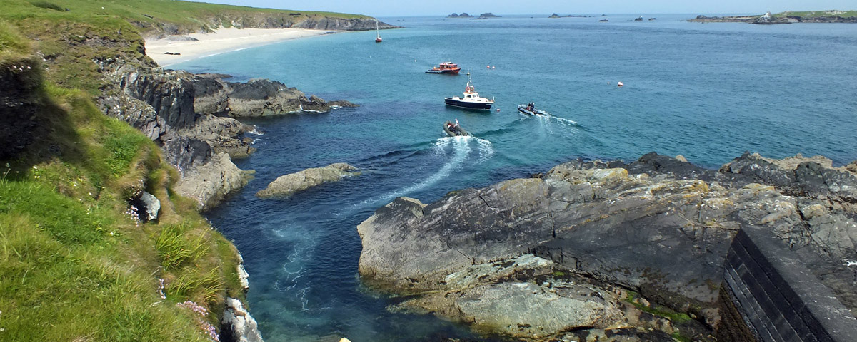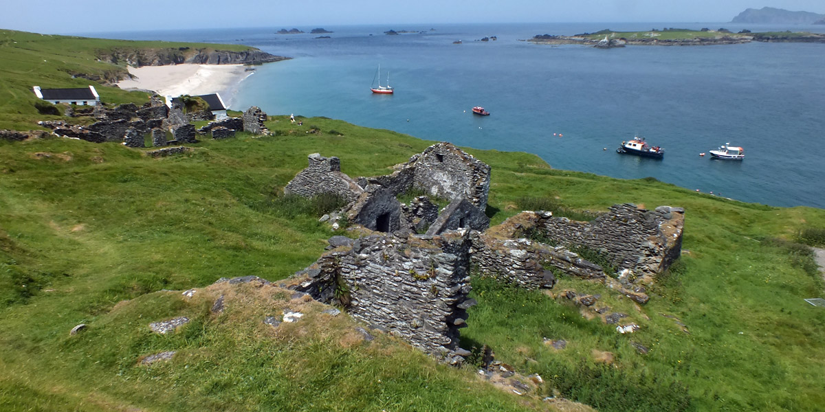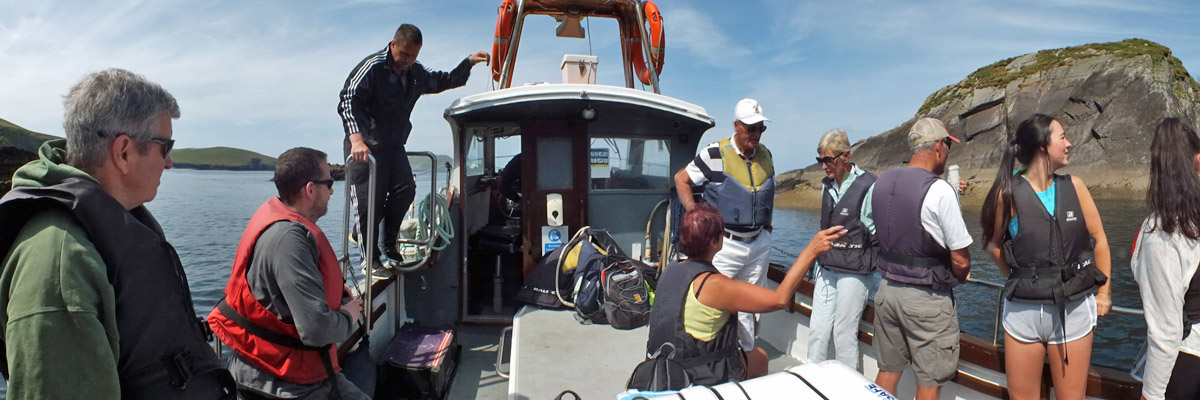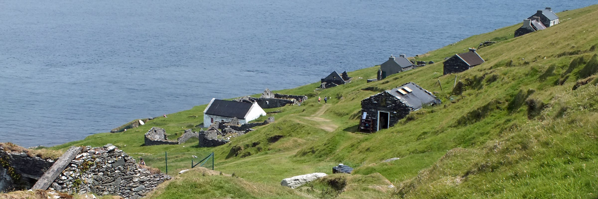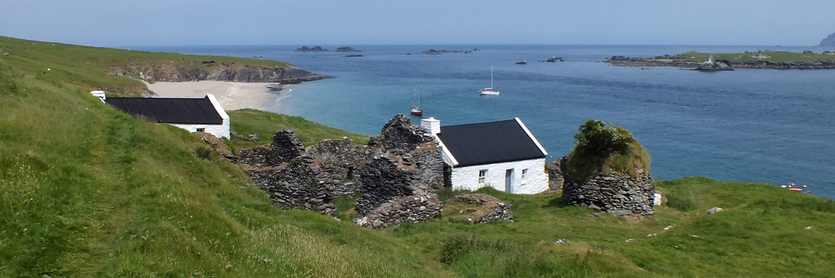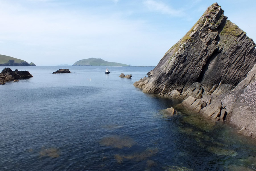 A dinghy takes us to our transport, a boat that is itself none too large. It's about two and a half miles across to the Great Blasket. The walk up from the landing is on uneven rock, not easy for those unsure of foot.