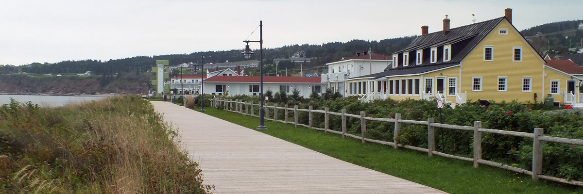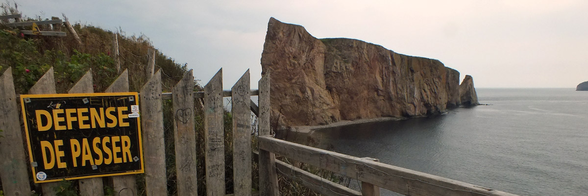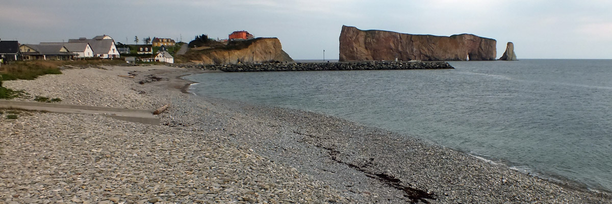 Back down, we take in the view from Cap Mont-Joli, the headland close by Rocher Percé. The nearby Villa Frederick-James, built in 1887 by the American painter of that name, is undergoing a major rehabilitation, and is covered by scaffolding with lovely orange sheeting. James was known for scenes depicting upper-class American life, rather different from the works of his rough contemporary, Krieghoff; but at some point he was smitten by Percé, and it appears he spent the last two decades of his life there, or maybe just summers.