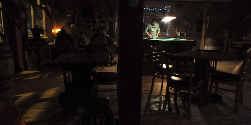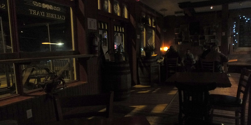 L'Anse-à-Beaufils is on our route, so we stop for a pint at Pit Caribou's taproom. This evening we dine again at La Maison du Pêcheur, the lukewarm chowder having been forgiven. We looked at menus at several of the other restaurants around town, but saw nothing that could draw us away from what has become our usual. We have a couple pints at Pit Caribou and are about to call it a night when we fall into conversation with a local named Jimmy. We stay for a pint or two too many, as well as shot of something or other that somebody or other has bought for the house. Why do these things always happen the night before we're leaving town?