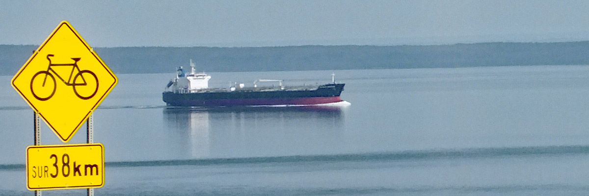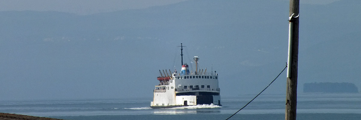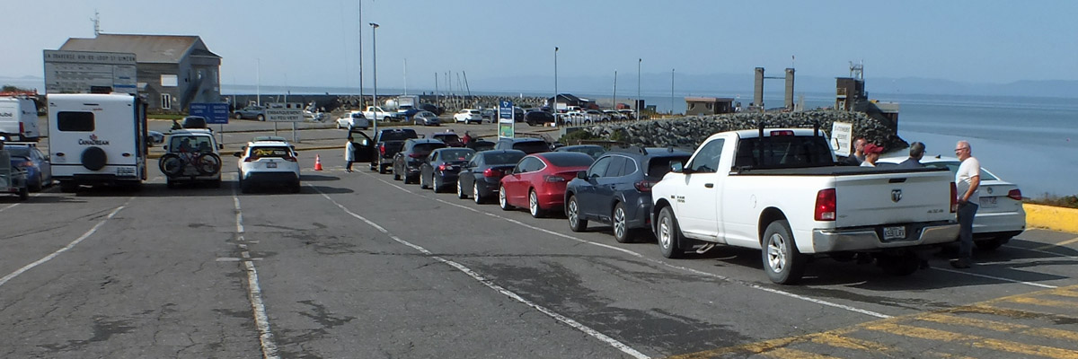 Thursday 28 September 2023---Our ferry is at midday, and the terminal is a mile from the hotel, so we sleep in a while. Still, we want to be in the queue early, as boarding is first come, first served. We get coffee and a bagel at Tim's, and then hang out at the terminal. It's a pleasant sunny day.
