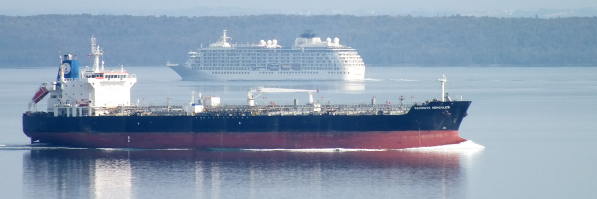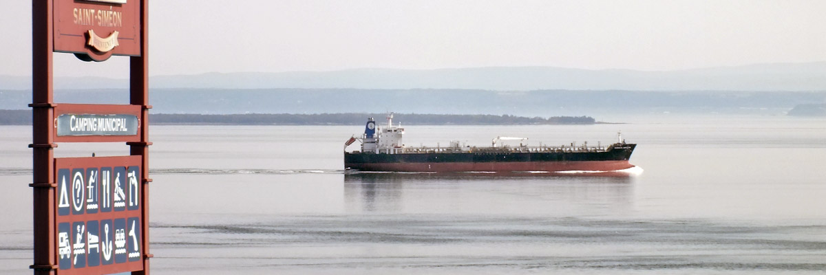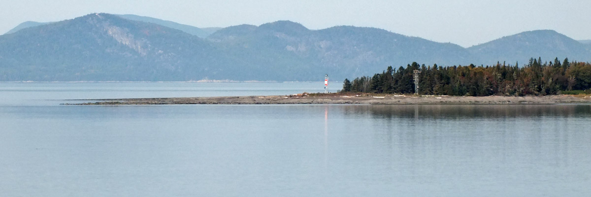 I mentioned somewhere before that the north shore terminal at Saint-Siméon is actually south of the south shore terminal, as the river is more north/south here than east/west. As well, the route dips southward to round the tip of l'Île-aux-Lièvres, a long slender island that is mostly wild, although there is an auberge toward the north end that looks interesting. A bit out of my price range, I think.