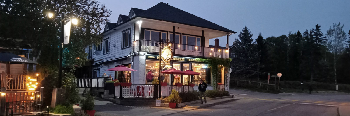 We walk down to the Microbrasserie Tadoussac for a pint or two. Since I was here last, the microbrasserie acquired the pub up behind, and we planned to have dinner there. We're disappointed to find that it's closed for the season. We dine instead at La Galouine, the hotel from which we rented our apartment.