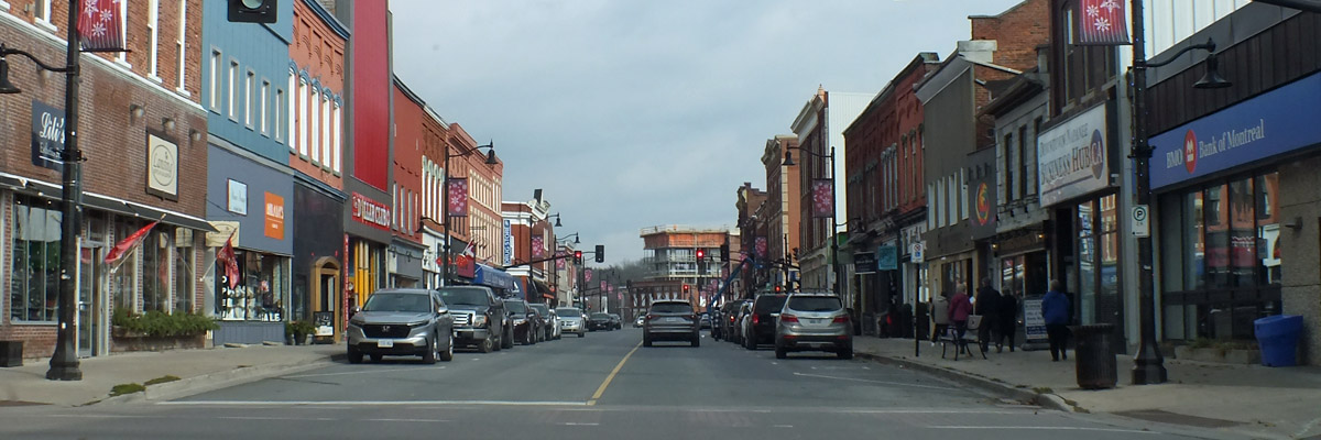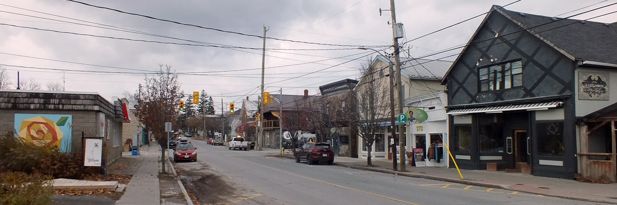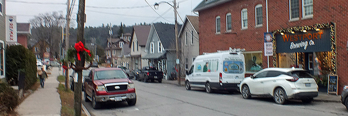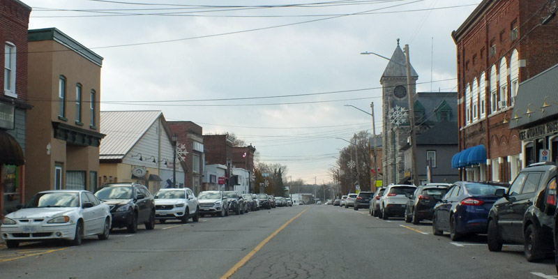 Thursday 23 November 2023--I'm leaving Prince Edward County today, happy with my stay. I know an awful lot more about it than I did a few weeks ago, and think it would be worth returning to learn more. For now, onward...my destination is Westport, about halfway to Ottawa. I leave the county via routes 2 and 62, over the Norris Whitney Bridge, named for the MLA who represented Prince Edward County from 1951 to 1971. On the other side, I drive up and down the main blocks of Belleville, one of a number of Ontario towns I've driven past on the 401 but have never seen, the largest in the 120 miles or so between Oshawa and Kingston. To be honest, I don't find it terribly attractive, but there's only so much you can see on a drive-through.