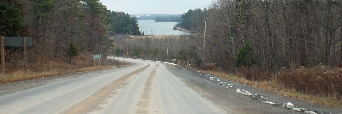 On I go through Napanee, which is larger than I expected, and looks like a lively burg. Then northeast an hour or so along mostly minor roads, toward Westport. Along the way, the topography changes from the farmland of the St Lawrence Lowlands to the roughly-wooded and lake-dotted Canadian Shield, where glaciation exposed ancient Precambrian rock during the last Ice Age. The transition is not clear-cut, but is rather a patchwork in places.