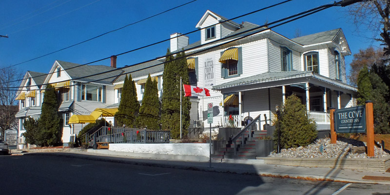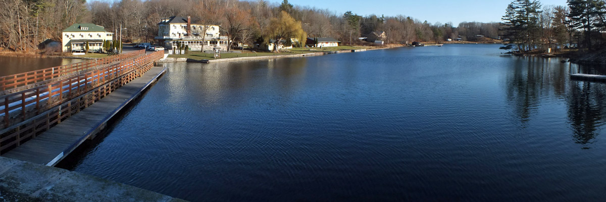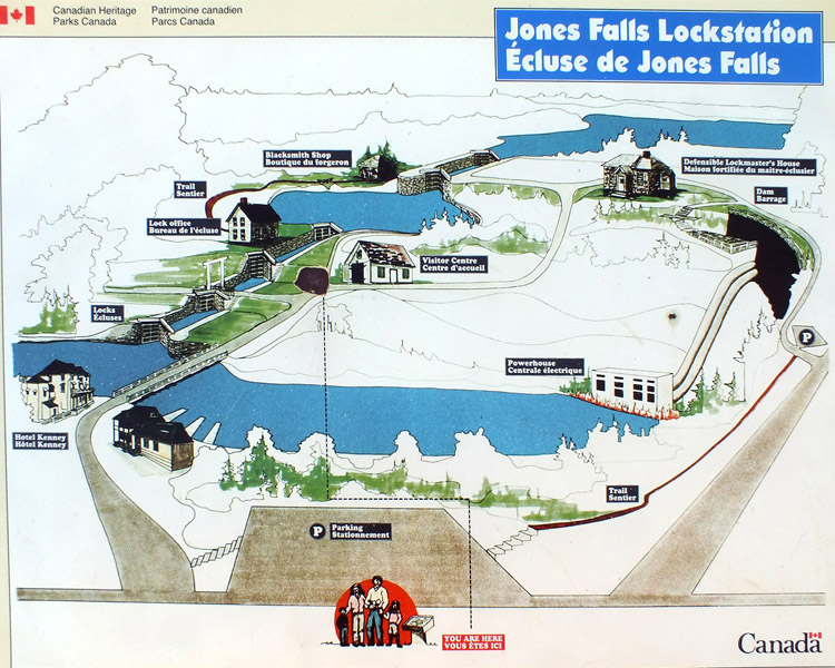 An early road passed over the canal, but a modern bridge a mile and a half upstream rendered it obsolete. The footings of a swing bridge are still visible on either side of one of the locks. Without through traffic, Jones Falls is a peaceful spot. The Hotel Kenney, built in 1888 below the locks, looks like it would be a nice place to spend a couple of quiet evenings.