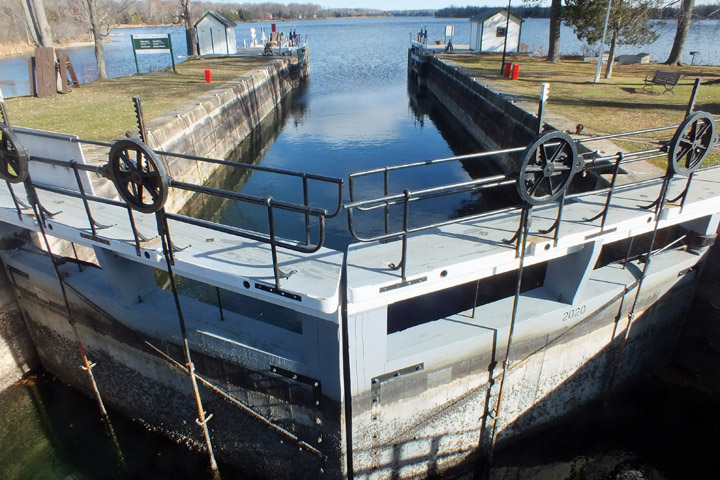 The canal's utility for military preparedness was never seriously tested, but it quickly became a commercial success. The railroads supplanted the canals, of course, but there was a period when they complemented each other--for some years, coal for the trains was brought up the canal from Kingston to Smiths Falls. But in the early years of the 20th century, the canal's main purpose shifted to pleasure boating, and so it remains today. Responsibility for the canal was handed over from the Department of Transport to Parks Canada in 1975. The former agency began a program of modernization in the 1960s, but fortunately, it hadn't gotten far. Newboro is one of three locks that got updated: its steel gates are opened and closed by hydraulic rams, powered electrically at the push of a button. Maintaining historical accuracy, insofar as it is possible, is now the park service's mandate; all of the other locks are operated by hand, by park staff, during the season.