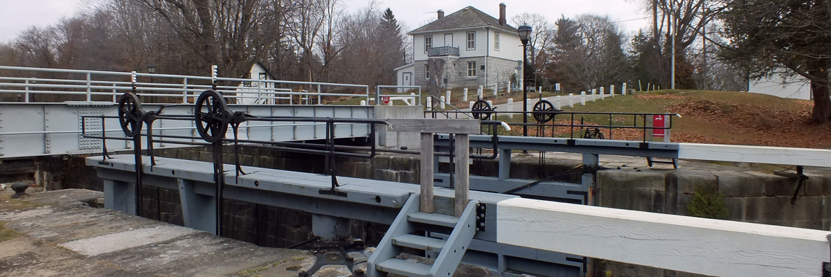 I'm off north now, headed towards Smiths Falls. But first, I have a look at the locks at Upper and Lower Beveridges. These are not on the Rideau Canal proper, but on the spur Tay Canal, leading to Perth. The good folk of Perth hoped that they would be linked to the main canal, but that was not in Colonel By's remit. A privately-financed series of five wooden locks was built on the Tay River in the early 1830s. This first Tay Canal was not a success, partly because the locks were smaller than those in the main canal. Maintenance lagged, and the route was shut down in 1865. The two locks that are here now, along with the canal cut they sit in, were built in 1885-87, through the influence of local MP John G Haggart. They are identical in design to the Rideau locks.