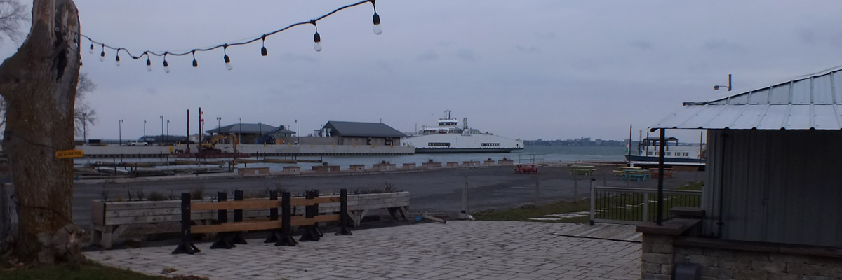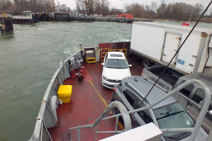 Monday 27 November 2023--There is a seasonal ferry that runs from the south side of Wolfe Island to Cape Vincent, New York. It took me some time in planning to determine that it shut down in October. Going that way would have saved me an hour going home. Instead, I am taking the ferry back to Kingston, and crossing the border on the Thousand Islands bridges again.