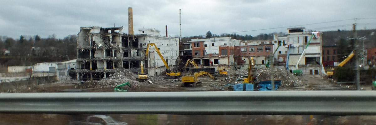 At Canajoharie, along the New York Thruway, I see the last of the old Beech-Nut plant being demolished. My Uncle Dave was a chemist there for decades, and my four cousins grew up here. They live in four different states now. I live in the house I grew up in, not what I had planned when I was young, but there you go. I arrive shortly after dark, and prepare to hibernate for the winter.