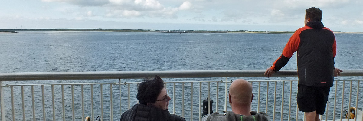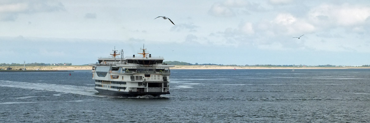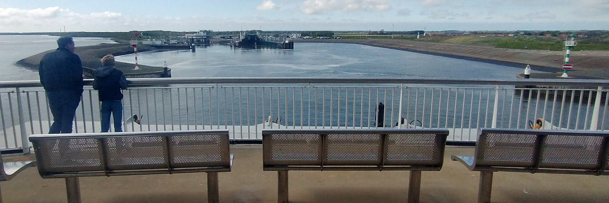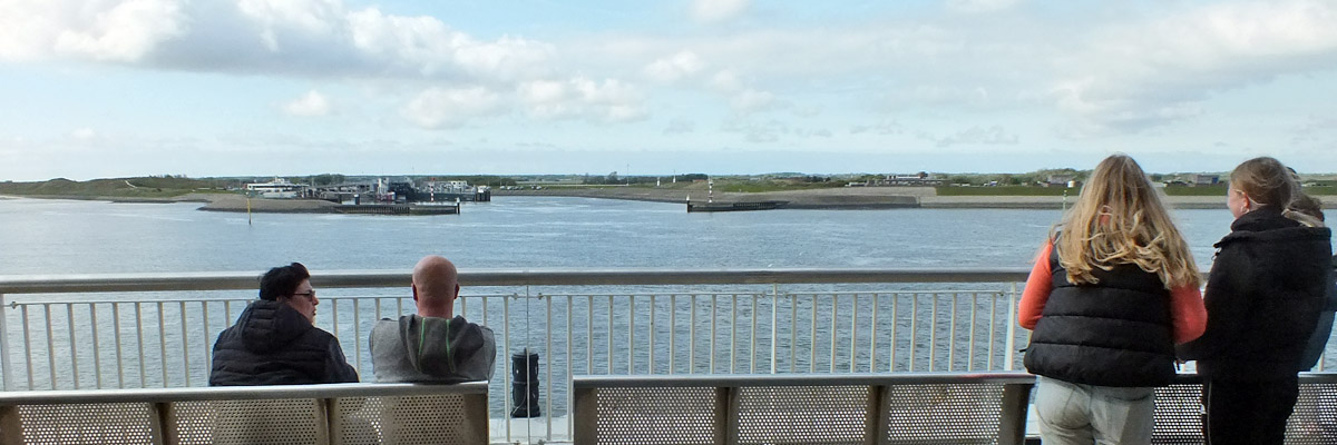 I arrive at the ferry terminal just in time to see the gates closing on the 4:30 crossing to Texel. No big deal, there's one every half-hour. Aboard the 5:00, I watch Den Helder receding in one direction, and the island approaching in the other. From a distance, its one striking feature is its flatness.