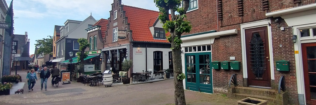 Once across, I drive to Den Burg, the largest settlement on the island (pop ~6500), check into my hotel, and go for a stroll around. I'm not entirely sure what to expect, but I assume Den Burg will have typical Dutch holiday town charm, and so it does. The old center is pedestrian-friendly and full of restaurants and shops. And there's a nice pub, of course, Taveerne De Twaalf Balcken (The Twelve Beams, usually styled De 12 Balcken) with an enticing menu and beer list, as well as a friendly staff. The barmaid is pretty and kind of goofy, and about fifty years younger than I. I have dinner and a couple pints, then go check out De Slock. It looks, on first glance, like the town's evil rock'n'roll bar, but the denizens are all benign-looking geezers. It's not my style, though, and I know De 12 Balcken is going to be my local for the next few nights.