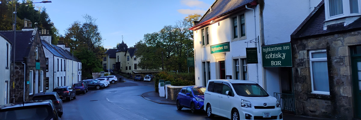 Thursday 17 October 2024--We leave Craigellachie this morning, driving southwest through Aberlour, then northwest on the familiar back roads through Carron and Dallas, to pick up the A96 in Forres. We thought for a bit about somewhere to take a break on our way to Plockton. Inverness is halfway, but does not appeal. I suggested Beauly, which I visited with Scott and Win in 2010, but which Ron has not seen. I decide to travel west on Clachnaharry Road on the south side of the Beauly Firth, rather than crossing the Kessock Bridge on the A9; this means cutting through Inverness, which I'm doing by the seat of my pants. A wrong turn or two is inevitable, but not disastrous.