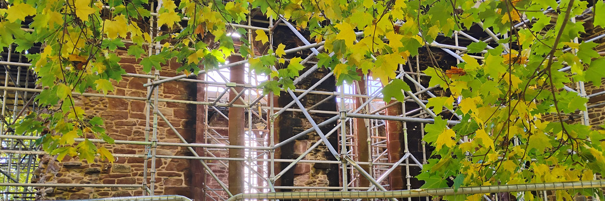 Beauly (pronounced like "beauty", except with an l instead of a t) is a pleasant village of 1400 or so which grew up around the 13th-century priory. I'd think it a suitable spot to spend a night on the way from here to there, except that, according to CAMRA, neither of the pubs serves real ale. Scandalous. Legend has it that the name of the place comes from Mary Queen of Scots, who reportedly declared "C'est un beau lieu" on a visit in 1564; but it's well documented that the name was in use long before. The ruined priory church visitors see today dates from the 1530s. As it happens, we can see very little of it, as it is entirely clad in scaffolding, work being done to assure that future visitors will be able to see it. Perhaps we will be among them...the light lunch we have at Cafe Biagiotti is itself enticement enough to return.