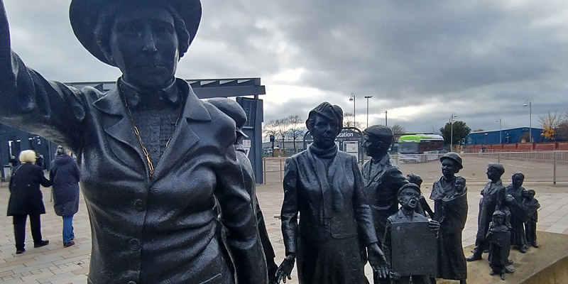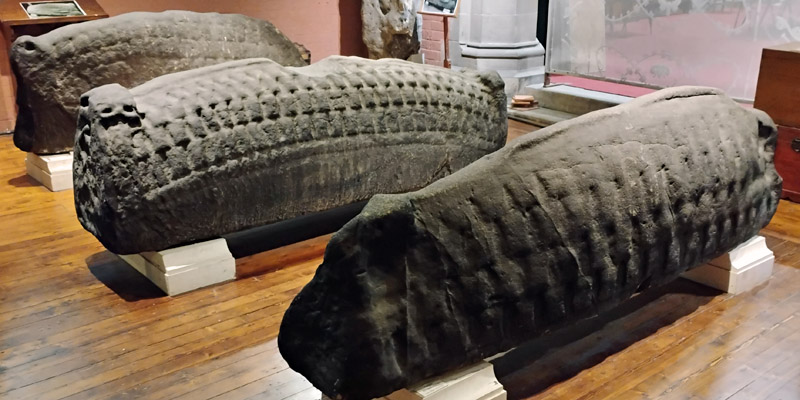 Tuesday 29 October 2024--Ron is off to the Kelvingrove Gallery today. I hop on the Glasgow Subway (on spiffy new cars!) at St Enoch and ride around to the neighborhood of Govan, on the south bank of the Clyde. I walk past the statue of social activist Mary Barbour and into Govan Old Church, where there is a display of carved stones, in particular the so-called Govan Stones. These are hogback stones, medieval grave markers found in areas with a strong Norse influence, mostly southwestern Scotland and northwestern England. (Win and I saw two of them in Gosforth, Cumbria, in 2017.) The reason for their shape is not certain, but the prevailing theory is that they are supposed to evoke the roof of a Norse longhouse, or a meadhall in Valhalla.